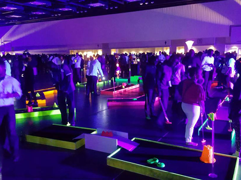 We have a 3 hole set ready to rent for your next party to make it a glowing success! If you have a larger event, we can add up to 6 holes or 9 holes.